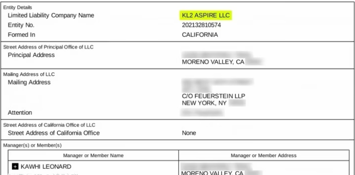 最关键的交易发生在2022年4月,快船队核心莱昂纳德通过其个人有限责任公司KL2 Aspire与阿斯皮雷公司签订了一份为期四年、价值2800万美元的代言合同。而在此之前,莱昂纳德刚刚与快船队签下了一份四年1.763亿美元的顶薪续约合同。